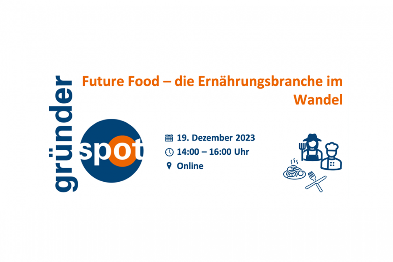 Mit der Veranstaltungsreihe gründerspot informiert die BIOPRO Baden-Württemberg Gründer/-innen in regelmäßigen Abständen zu gründungsrelevanten Themen aus den Bereichen Life Sciences und Bioökonomie. Das nächste Online-Event aus dieser Reihe findet am 19. Dezember 2023 von 14-16 Uhr statt und dreht sich rund um das Thema „Future Food – die Ernährungsbranche im Wandel“.