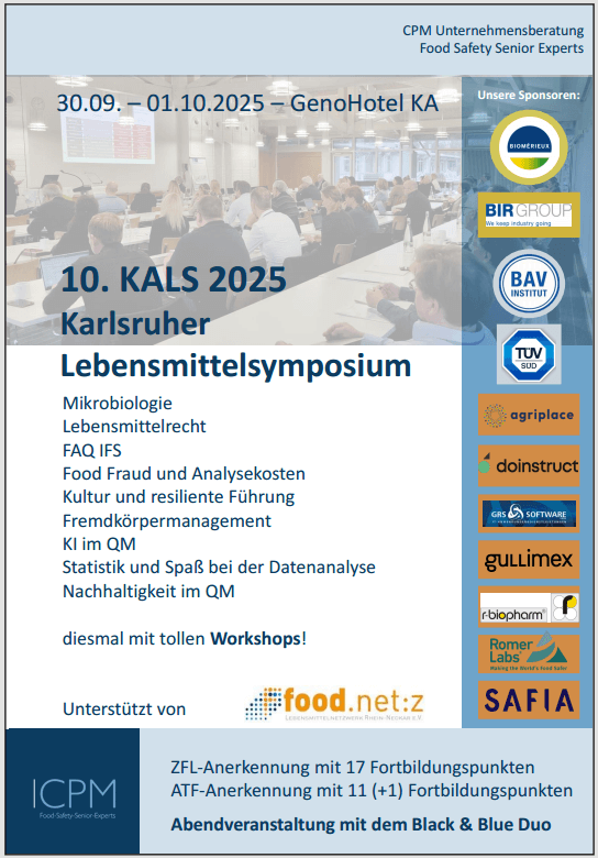Vom 30.09.2025 – 01.10.2025 findet im GenoHotel Karlsruhe das KALS Lebensmittelsymposium statt. Das Symposium wurde innerhalb weniger Jahre zum Highlight der Fortbildungsveranstaltungen für QualitätsmanagerInnen und Produktionsleitungen, für Unternehmensführende, Lebensmittelüberwachung und AuditorInnen.